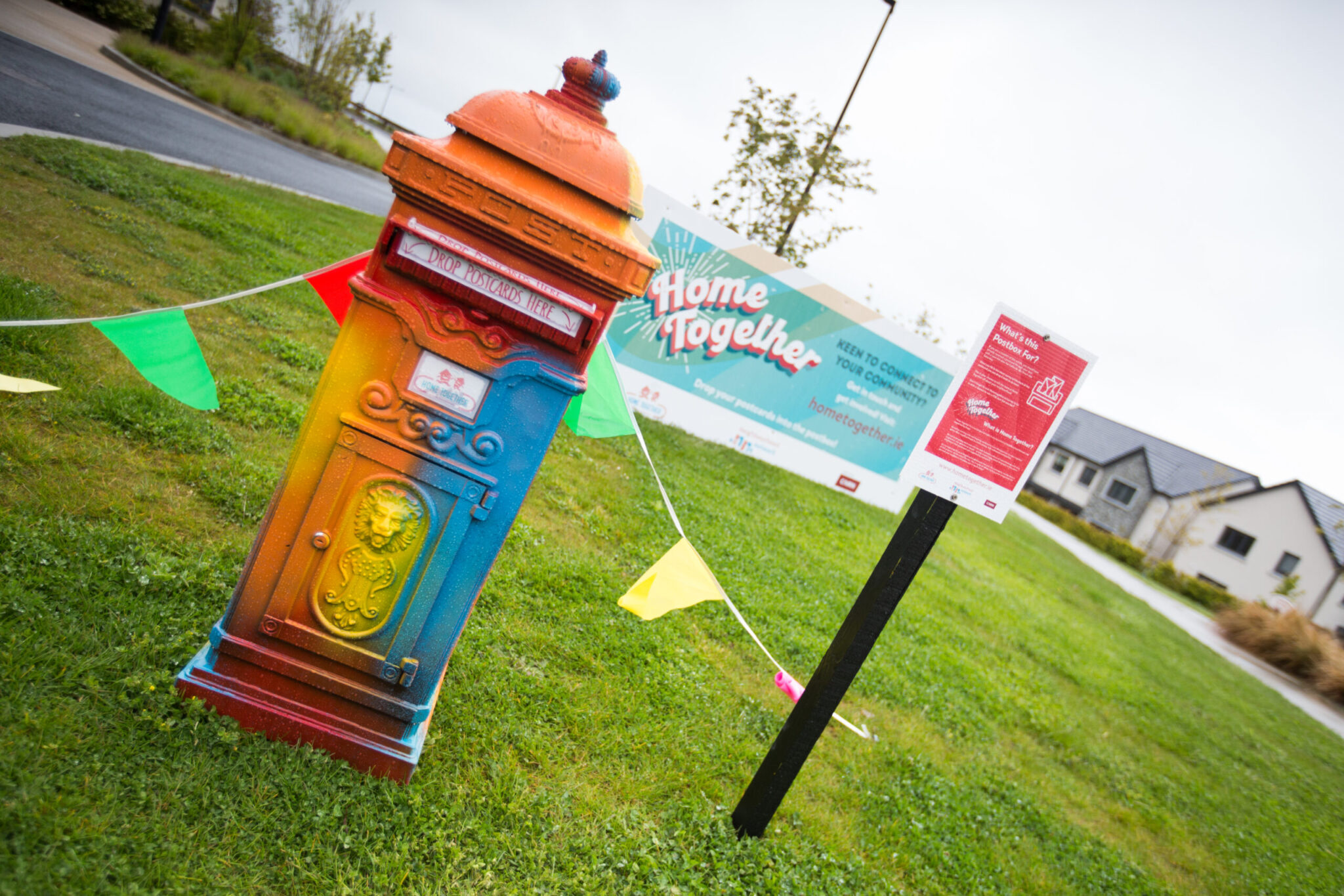 The initiative kicks off with a coffee morning, publicised with a Save the Date postcard dropped through each door. The Save a Date postcard included a survey; this survey was also conducted online in order to get a full picture of the residents’ opinions about their community before the initiative kicked off. “We dropped a postcard with a survey on the back and a “save the date” for the event through every door,” explains Jessica. “We then installed a rainbow postbox for ideas and these surveys – kids loved this especially and were posting all sorts of pictures to us.”